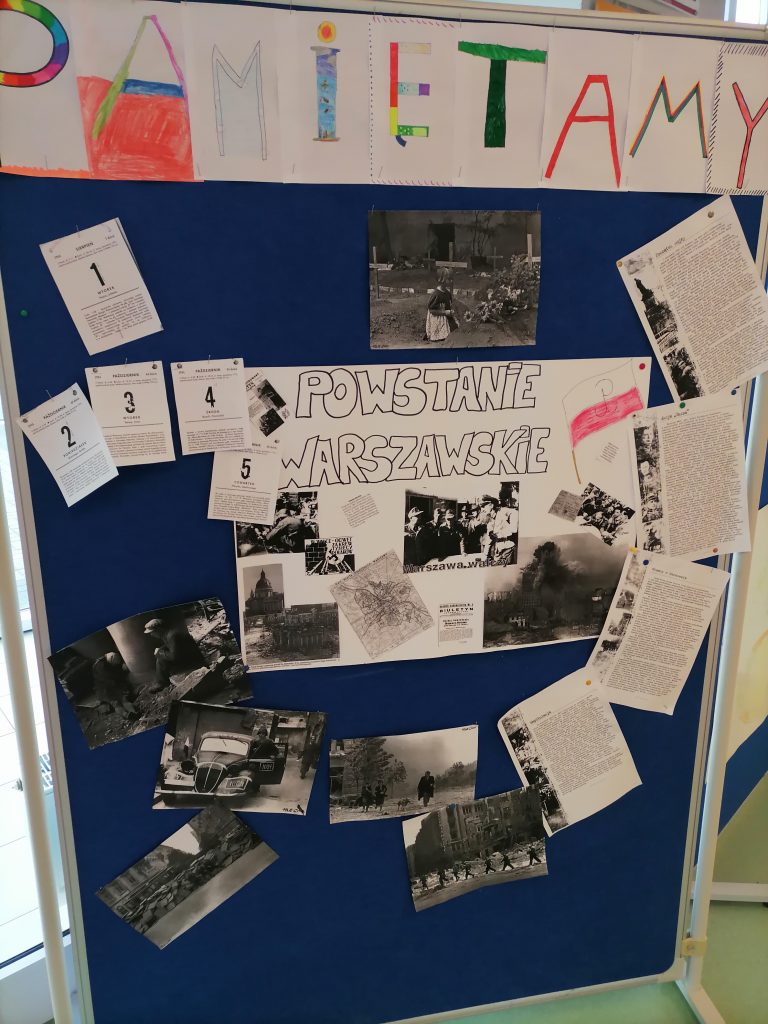 Nasi Uczniowie czynnie włączyli się do akcji przygotowując m.in. gazetkę o Powstaniu Warszawskim. Uczniowie klasy 7 „e” dodatkowo stworzyli przepiękne kartki, które zostały wysłane do Powstańców.