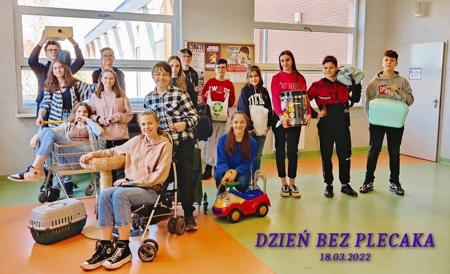 W piątek, 18 marca cała szkoła radośnie pożegnała odchodzącą zimę. Wszystko za sprawą Pani Eli Waraczewskiej i będącego pod jej opieką Samorządu Szkolnego, który zorganizował popularny ostatnimi czasy w placówkach oświatowych na całym świecie dzień bez plecaka. Zadaniem uczniów było spakowanie książek i zeszytów w coś innego niż zwykły plecak. Wszyscy puścili wodze fantazji i spisali się na medal! Zarówno młodsi jak i starsi wykazali się przeogromną pomysłowością i poczuciem humoru. Uśmiechom i zabawom nie było końca! Poniżej przedstawiamy fotorelację z piątkowej zabawy, gorąco zachęcamy do oglądania.