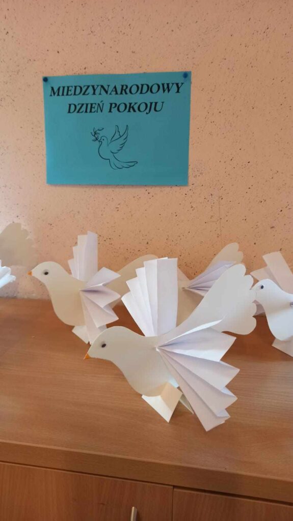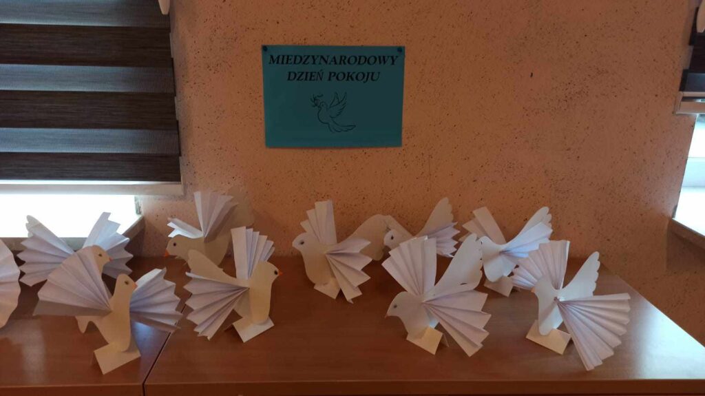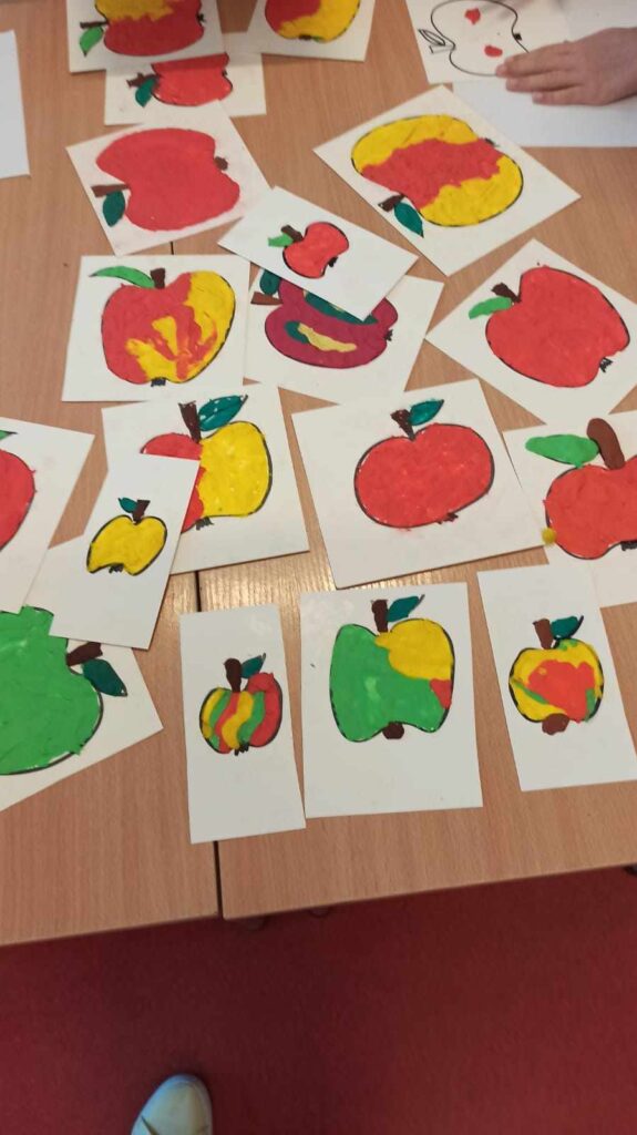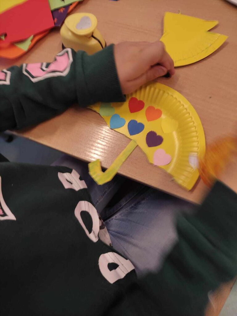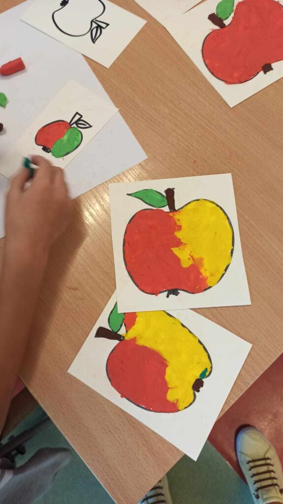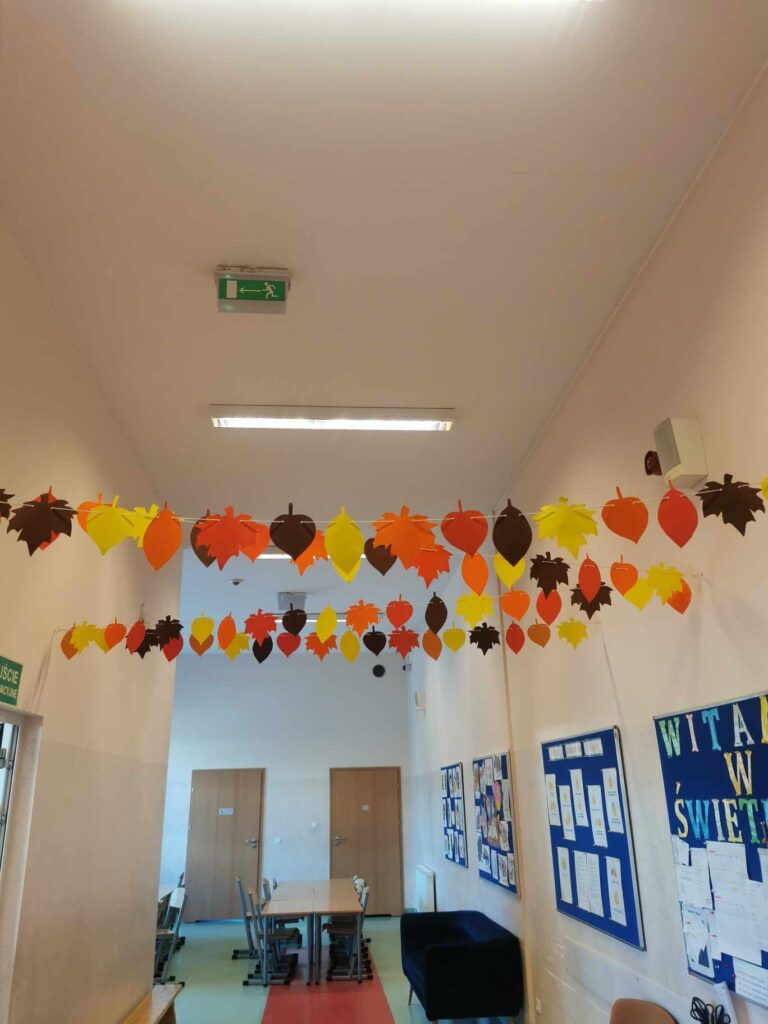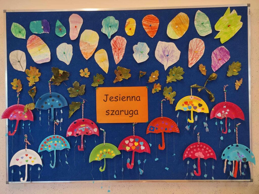 We wrześniu, poprzez zabawy i rozmowy, uczniowie poznawali swoich nowych kolegów i nauczycieli świetlicy. Przywitaliśmy w świetlicowej i szkolnej społeczności nowych uczniów. Dzieci zapoznały się z zasadami obowiązującymi w świetlicy, na placu zabaw i boisku szkolnym, a także z zasadami obowiązującymi podczas alarmu przeciwpożarowego. Wspominaliśmy minione wakacje, odwiedzane miejsca i przeżyte wakacyjne przygody. W słonecznej i ciepłej pogodzie przywitaliśmy jesień. Obserwowaliśmy zmiany w przyrodzie przyniesione przez tą porę roku. Ważnym wrześniowym tematem pogadanek i ćwiczeń praktycznych były zasady bezpieczeństwa podczas drogi do szkoły i w drodze ze szkoły, znajomość ważnych znaków drogowych i zasad obowiązujących podczas jazdy rowerem, czy hulajnogą. Uczniowie wykonali sygnalizatory z plasteliny oraz uzupełniali niedokończone zdania na temat bezpieczeństwa. Nawiązując do Międzynarodowego Dnia Pokoju dzieci wypowiadały się na temat pokoju i wykonały gołąbki pokoju, a z okazji Światowego Dnia Nosorożca uczniowie poznali ciekawostki z życia tych zwierząt i wykonały nawiązujące do tematu prace. W tygodniu rozmów o jesieni dzieci wykonały nawiązujące do jesiennej pogody parasole. Uczniowie dowiedzieli się także dlaczego liście zmieniają kolory, powstały piękne prace plastyczne z wykorzystaniem liści. W nawiązaniu do Światowego Dnia Jabłka uczniowie poznali ciekawostki na temat tego owocu oraz ozdobili jabłonkę własnoręcznie wykonanymi jabłkami. Uczniowie wykonywali w świetlicy różnorodne prace plastyczne w nawiązaniu do słuchowisk, rozwiązywali zagadki i quizy, słuchali opowiadań i bajek oraz oglądały filmy edukacyjne związane z omawianymi tematami zajęć. Odbywały się także poranne rozgrzewki przy muzyce oraz spacery i wyjścia na szkolne boisko i plac zabaw. Pod koniec miesiąca obchodziliśmy świetlicowy Dzień Chłopaka. Chłopcy otrzymali kolorowe krawaty i słodkie upominki. Powstały też kolorowe dekoracje świetlicy nawiązujące do nowej pory roku. Pod koniec miesiąca odbył się próbny alarm pożarowy, dzieci przebywające w tym czasie w świetlicy miały okazję w nim uczestniczyć.