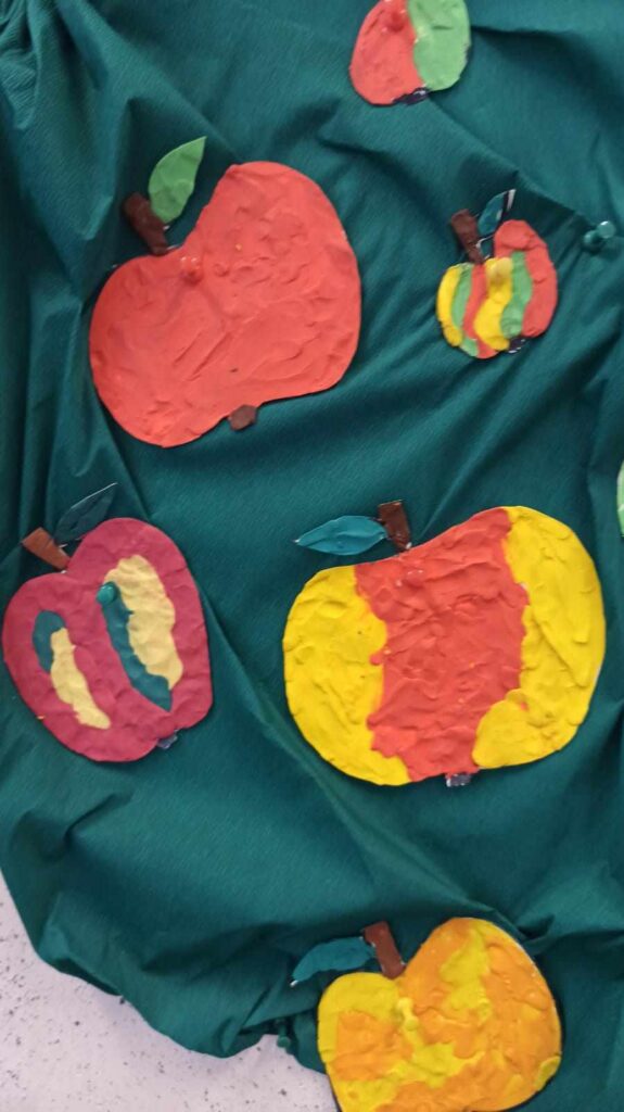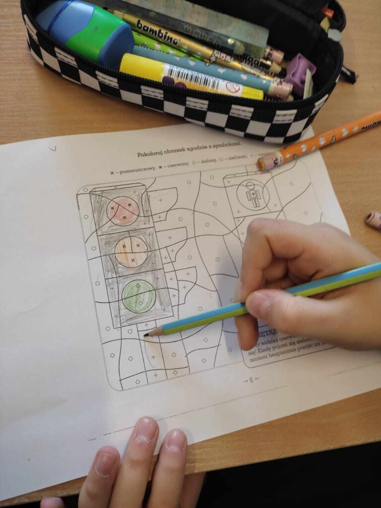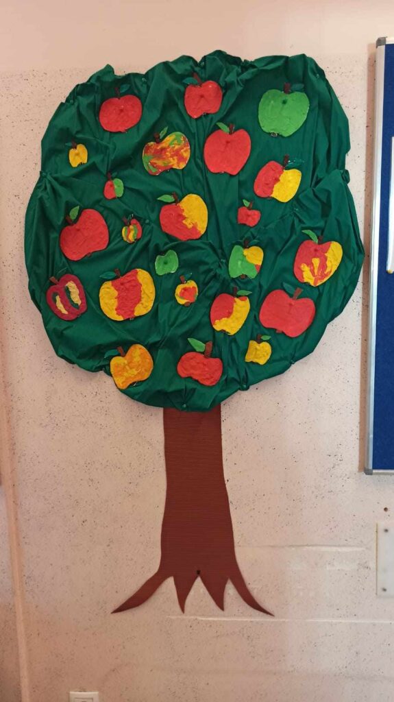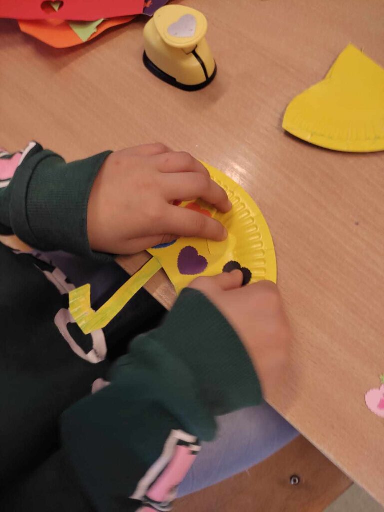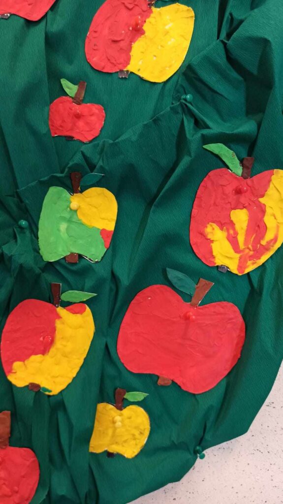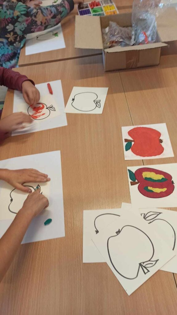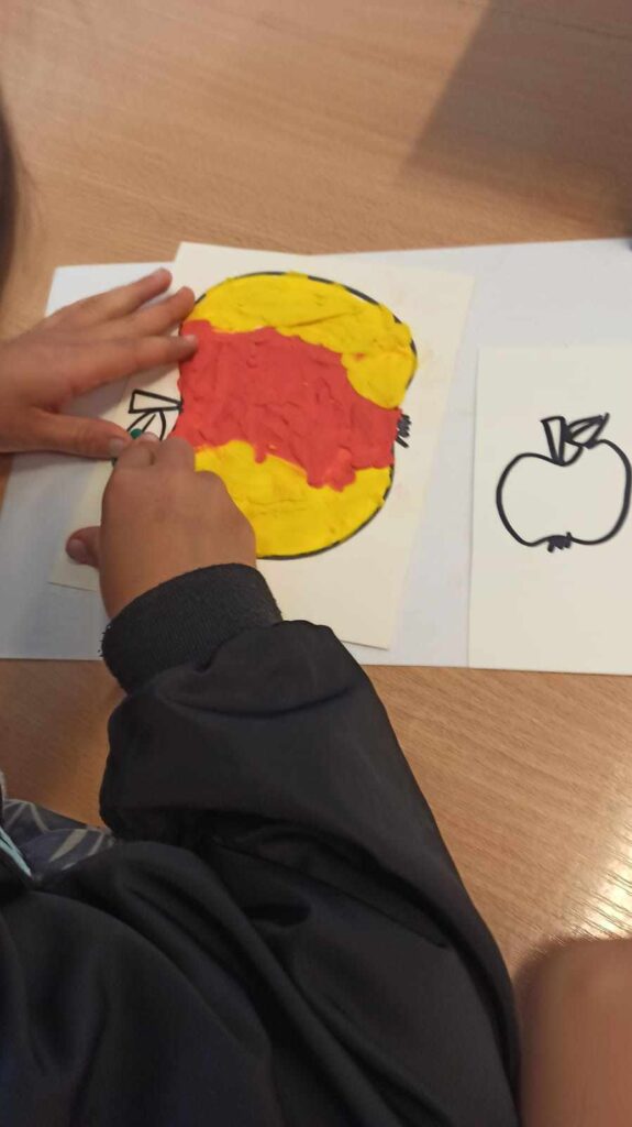 We wrześniu, poprzez zabawy i rozmowy, uczniowie poznawali swoich nowych kolegów i nauczycieli świetlicy. Przywitaliśmy w świetlicowej i szkolnej społeczności nowych uczniów. Dzieci zapoznały się z zasadami obowiązującymi w świetlicy, na placu zabaw i boisku szkolnym, a także z zasadami obowiązującymi podczas alarmu przeciwpożarowego. Wspominaliśmy minione wakacje, odwiedzane miejsca i przeżyte wakacyjne przygody. W słonecznej i ciepłej pogodzie przywitaliśmy jesień. Obserwowaliśmy zmiany w przyrodzie przyniesione przez tą porę roku. Ważnym wrześniowym tematem pogadanek i ćwiczeń praktycznych były zasady bezpieczeństwa podczas drogi do szkoły i w drodze ze szkoły, znajomość ważnych znaków drogowych i zasad obowiązujących podczas jazdy rowerem, czy hulajnogą. Uczniowie wykonali sygnalizatory z plasteliny oraz uzupełniali niedokończone zdania na temat bezpieczeństwa. Nawiązując do Międzynarodowego Dnia Pokoju dzieci wypowiadały się na temat pokoju i wykonały gołąbki pokoju, a z okazji Światowego Dnia Nosorożca uczniowie poznali ciekawostki z życia tych zwierząt i wykonały nawiązujące do tematu prace. W tygodniu rozmów o jesieni dzieci wykonały nawiązujące do jesiennej pogody parasole. Uczniowie dowiedzieli się także dlaczego liście zmieniają kolory, powstały piękne prace plastyczne z wykorzystaniem liści. W nawiązaniu do Światowego Dnia Jabłka uczniowie poznali ciekawostki na temat tego owocu oraz ozdobili jabłonkę własnoręcznie wykonanymi jabłkami. Uczniowie wykonywali w świetlicy różnorodne prace plastyczne w nawiązaniu do słuchowisk, rozwiązywali zagadki i quizy, słuchali opowiadań i bajek oraz oglądały filmy edukacyjne związane z omawianymi tematami zajęć. Odbywały się także poranne rozgrzewki przy muzyce oraz spacery i wyjścia na szkolne boisko i plac zabaw. Pod koniec miesiąca obchodziliśmy świetlicowy Dzień Chłopaka. Chłopcy otrzymali kolorowe krawaty i słodkie upominki. Powstały też kolorowe dekoracje świetlicy nawiązujące do nowej pory roku. Pod koniec miesiąca odbył się próbny alarm pożarowy, dzieci przebywające w tym czasie w świetlicy miały okazję w nim uczestniczyć.
