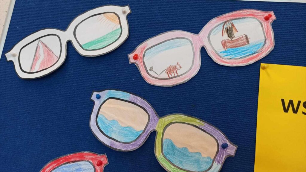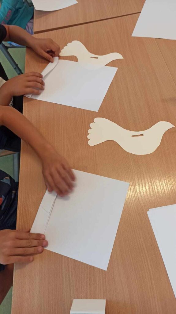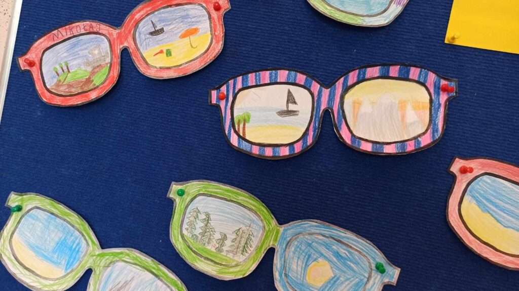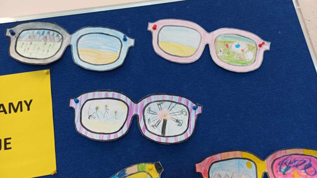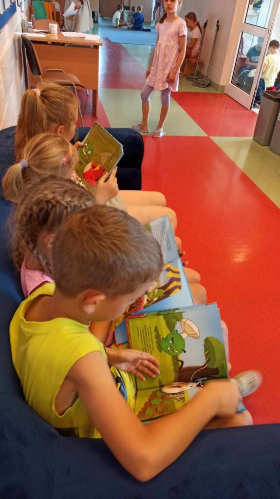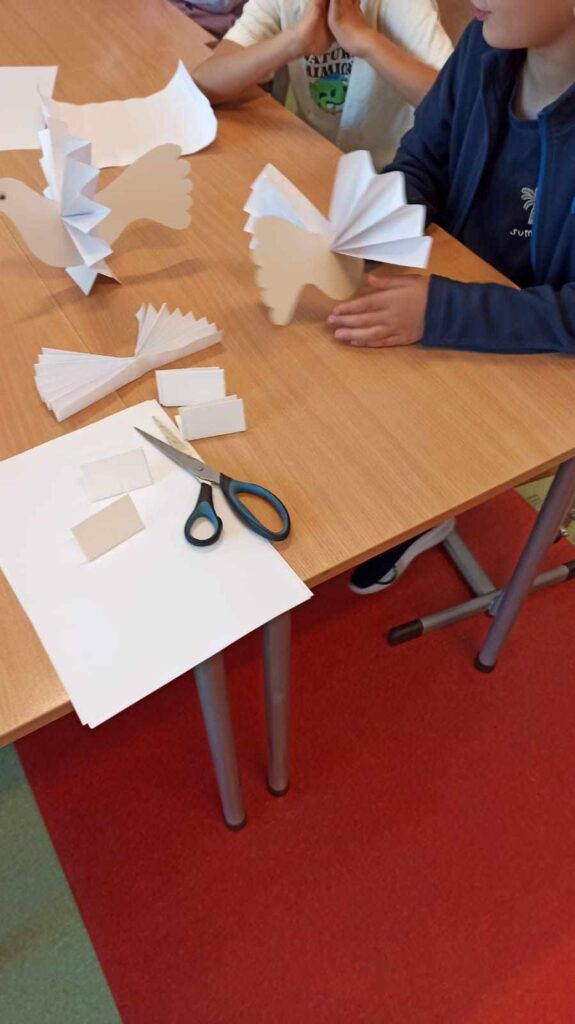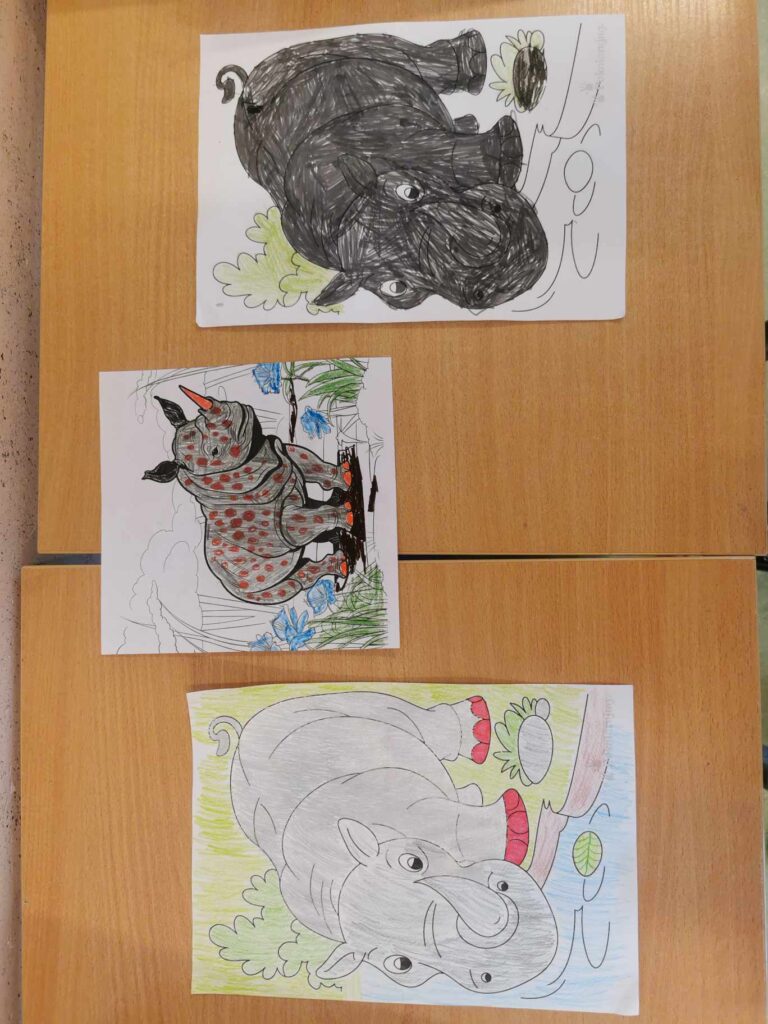 We wrześniu, poprzez zabawy i rozmowy, uczniowie poznawali swoich nowych kolegów i nauczycieli świetlicy. Przywitaliśmy w świetlicowej i szkolnej społeczności nowych uczniów. Dzieci zapoznały się z zasadami obowiązującymi w świetlicy, na placu zabaw i boisku szkolnym, a także z zasadami obowiązującymi podczas alarmu przeciwpożarowego. Wspominaliśmy minione wakacje, odwiedzane miejsca i przeżyte wakacyjne przygody. W słonecznej i ciepłej pogodzie przywitaliśmy jesień. Obserwowaliśmy zmiany w przyrodzie przyniesione przez tą porę roku. Ważnym wrześniowym tematem pogadanek i ćwiczeń praktycznych były zasady bezpieczeństwa podczas drogi do szkoły i w drodze ze szkoły, znajomość ważnych znaków drogowych i zasad obowiązujących podczas jazdy rowerem, czy hulajnogą. Uczniowie wykonali sygnalizatory z plasteliny oraz uzupełniali niedokończone zdania na temat bezpieczeństwa. Nawiązując do Międzynarodowego Dnia Pokoju dzieci wypowiadały się na temat pokoju i wykonały gołąbki pokoju, a z okazji Światowego Dnia Nosorożca uczniowie poznali ciekawostki z życia tych zwierząt i wykonały nawiązujące do tematu prace. W tygodniu rozmów o jesieni dzieci wykonały nawiązujące do jesiennej pogody parasole. Uczniowie dowiedzieli się także dlaczego liście zmieniają kolory, powstały piękne prace plastyczne z wykorzystaniem liści. W nawiązaniu do Światowego Dnia Jabłka uczniowie poznali ciekawostki na temat tego owocu oraz ozdobili jabłonkę własnoręcznie wykonanymi jabłkami. Uczniowie wykonywali w świetlicy różnorodne prace plastyczne w nawiązaniu do słuchowisk, rozwiązywali zagadki i quizy, słuchali opowiadań i bajek oraz oglądały filmy edukacyjne związane z omawianymi tematami zajęć. Odbywały się także poranne rozgrzewki przy muzyce oraz spacery i wyjścia na szkolne boisko i plac zabaw. Pod koniec miesiąca obchodziliśmy świetlicowy Dzień Chłopaka. Chłopcy otrzymali kolorowe krawaty i słodkie upominki. Powstały też kolorowe dekoracje świetlicy nawiązujące do nowej pory roku. Pod koniec miesiąca odbył się próbny alarm pożarowy, dzieci przebywające w tym czasie w świetlicy miały okazję w nim uczestniczyć.